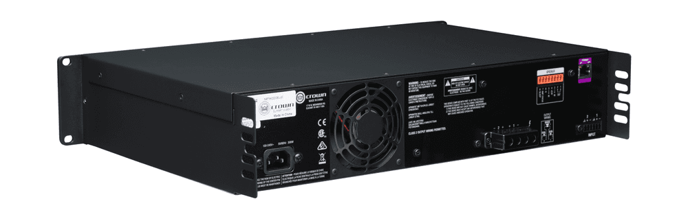 Amplificador rack 2 U de dos canales de 300 W @ 4 Ω (150 W @ 2 Ω; 300 W @ 8 Ω; 300 W @ 70/100 V), DSP con enrutador, delays, EQ paramétrico y limitadores LevelMAX™, enrutador de prioridad, HiQnet™ TCP/IP, refrigeración variable, fuente 100–240 VAC PFC; 483×89×356 mm; 6,6 kg.