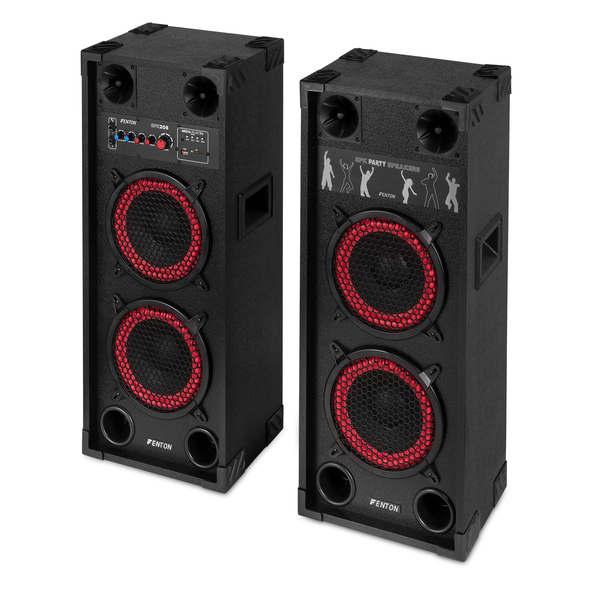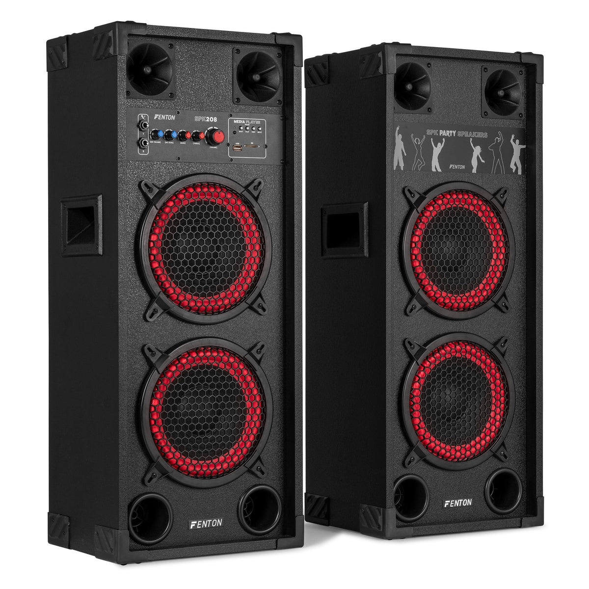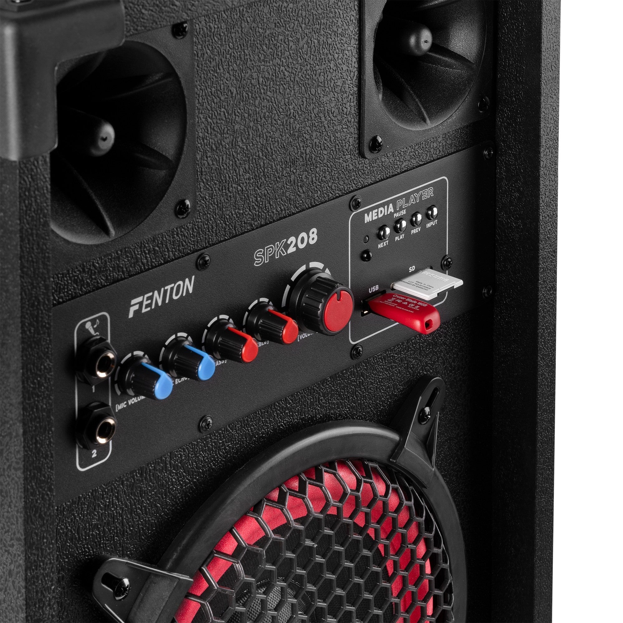 Fenton SPK-208 - Sistema de Altavoces Activos PA de 800W con Doble Woofer de 8", Bluetooth y Karaoke