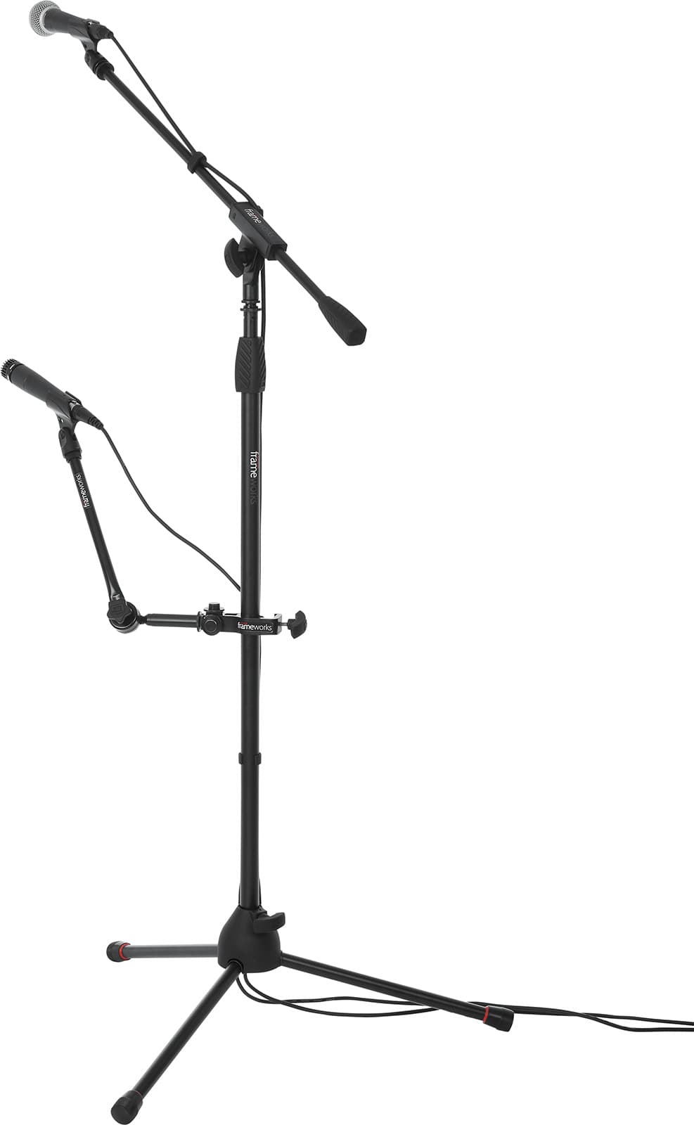 • Montaje flexible: reorganiza micrófonos y accesorios alrededor del mástil para encontrar el ángulo perfecto.