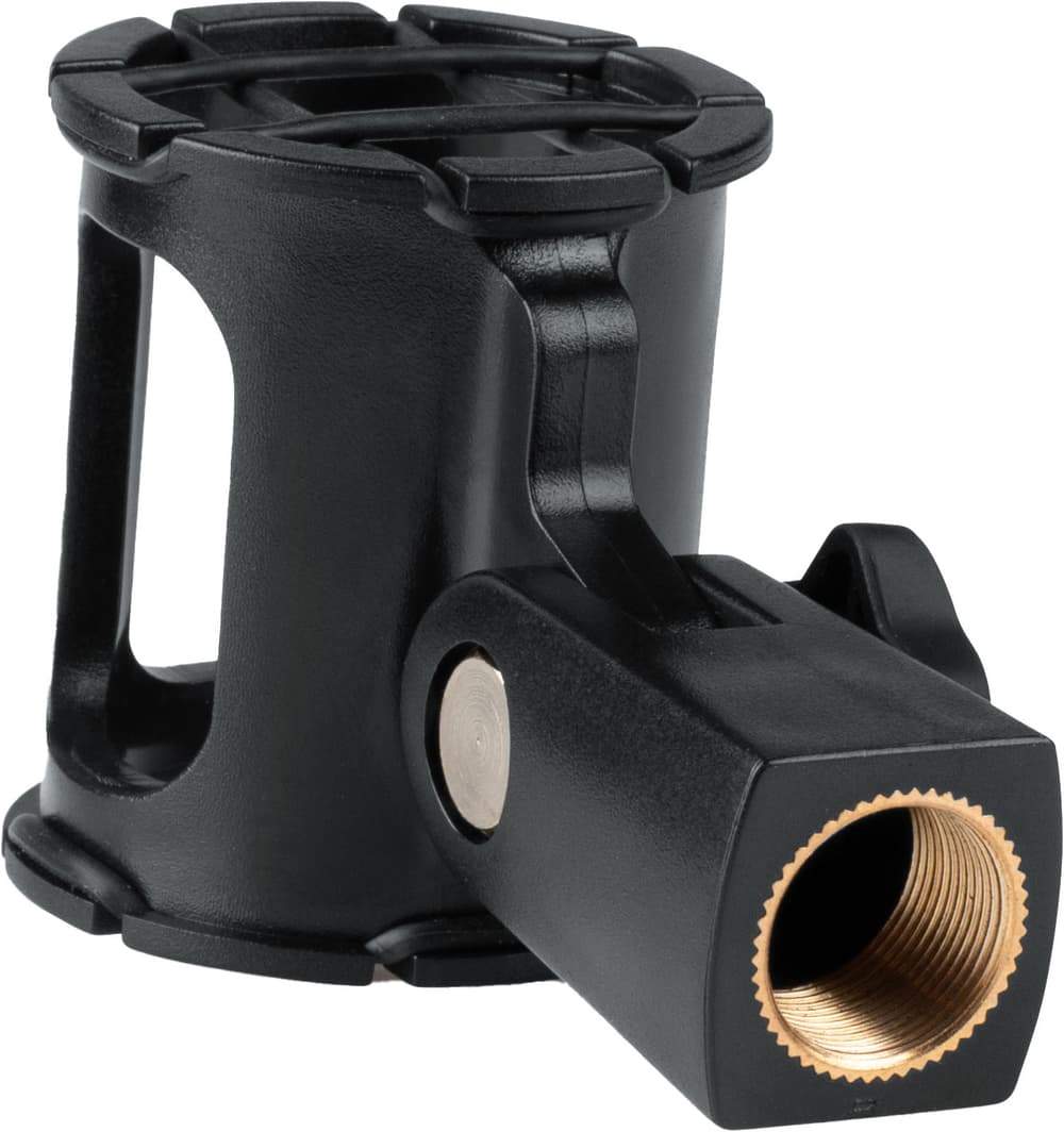- Ajusta el anillo interior y la perilla de inclinación con el micrófono colocado para asegurar sujeción y ángulo.