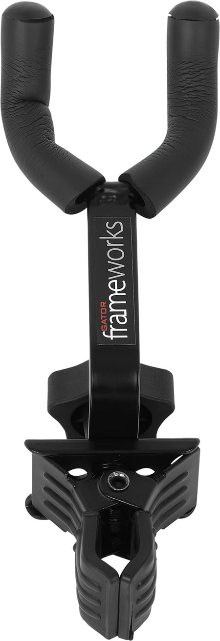 Gator Frameworks GFW-MICUKE-HNGR - Soporte colgador para ukelele/mandolina con abrazadera para pie de micrófono