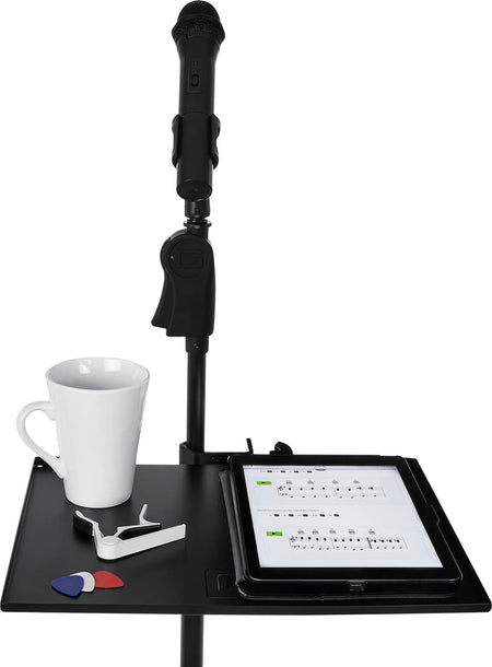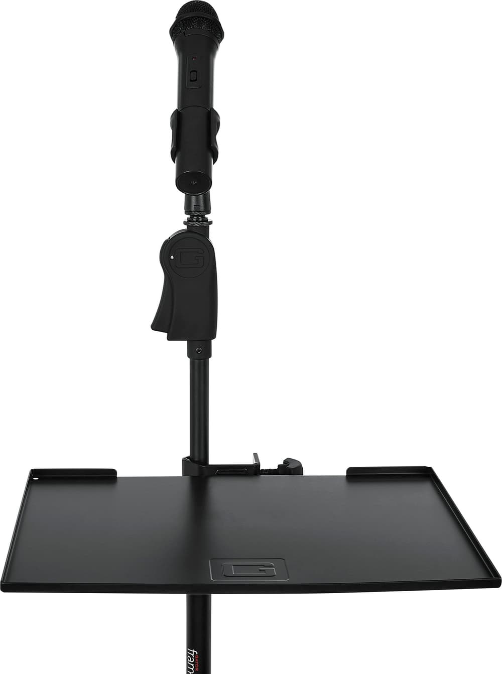 Gator Frameworks GFW-SHELF1115 - Bandeja con clamp para soporte de micrófono 28 × 38 cm (capacidad 4,5 kg)