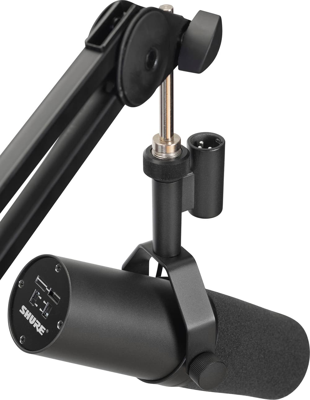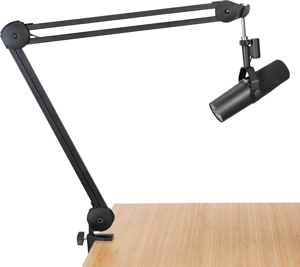 - ¿Es compatible con Shure SM7B / MV7? Sí. Dispone de rosca 5/8"-27 y capacidad de 1,1 kg, suficiente para estos modelos.