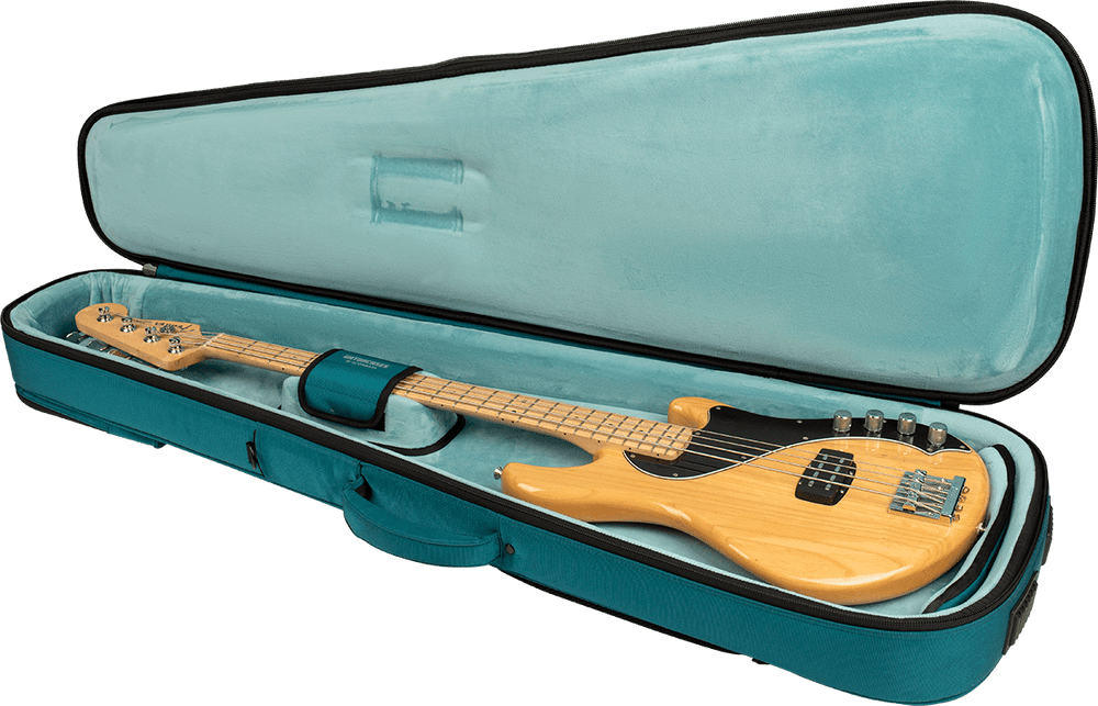 La estructura ICON utiliza varias capas de protección que le dan rigidez a la funda, absorben impactos y ayudan a mantener la forma, protegiendo el instrumento frente a golpes, apilado moderado y el desgaste propio de giras, estudios y desplazamientos diarios. En el interior, el bajo se apoya sobre un bloque de mástil ajustable y desmontable con cierre de velcro (hook-and-loop wrap) y bloques de cuerpo interiores que abrazan el instrumento, reducen movimientos y protegen especialmente las zonas críticas de mástil y pala.