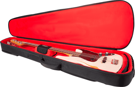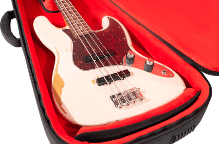 - Interior de microterciopelo rojo: forro de micro-velvet suave, que cuida el acabado del bajo y mejora la sujeción del instrumento.