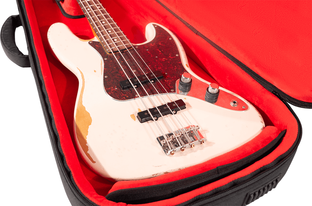 La funda está pensada para la mayoría de bajos eléctricos de escala larga (34") y muchos modelos de 35", siempre que se ajusten a las dimensiones interiores aproximadas (longitud total 121,9 cm, anchura máxima 38,1 cm, altura de cuerpo 7,0 cm). Acepta cuerpos tipo Jazz Bass, Precision, modelos modernos de 5 cuerdas y diseños similares.