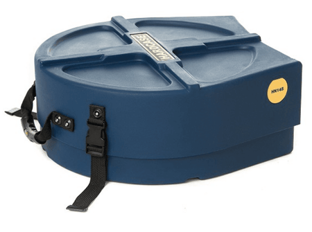 Estuche rígido para caja de 14" modelo HNP14SDB (Dark Blue); carcasa de polietileno impermeable por rotomoldeo; interior con foam pads; tapa telescópica; correas con clips Quick-Lock; asa confort; apilable; medidas útiles: Ø interior 439 mm; Ø con recorte 497 mm; profundidad recomendada 127–178 mm (5"–7"); peso aprox. 2,9 kg; fabricación en Reino Unido.