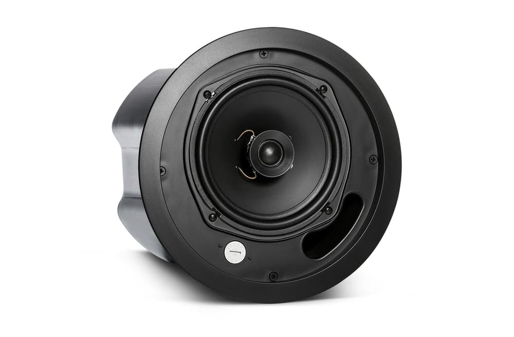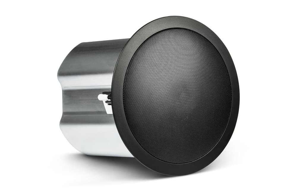 El JBL Professional Control 16C/T-BK es un altavoz de techo de dos vías diseñado para instalaciones comerciales que exigen alta inteligibilidad de voz, respuesta musical equilibrada y una cobertura homogénea. Su sistema coaxial combina un woofer de 165 mm con cono de polipropileno y borde de caucho de butilo con un tweeter de cúpula blanda de 19 mm refrigerado por líquido. El conjunto se monta en un bafle ventilado, pintable y resistente a rayos UV (ABS con clasificación UL94-V0/5VB), con lata trasera metálica de montaje ciego (backcan) preinstalada para agilizar la instalación en falsos techos y espacios plenum.