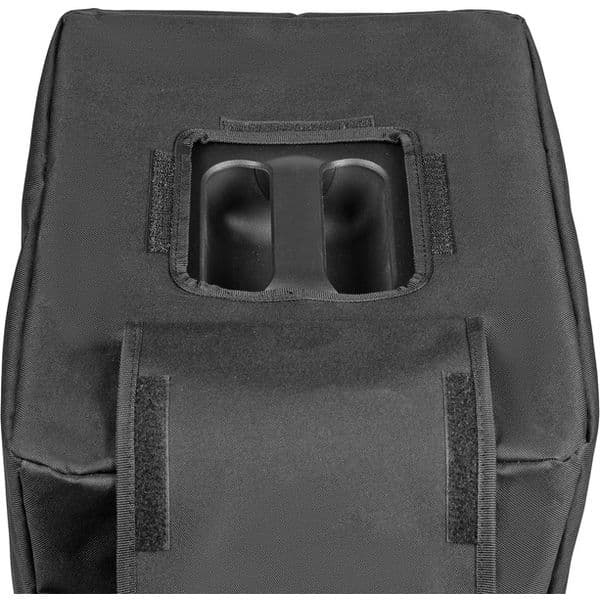 - Acceso Funcional al Asa: Incorpora un recorte estratégicamente ubicado en la parte superior que permite acceder al asa de transporte del altavoz. Este acceso está protegido por una solapa con cierre de velcro, permitiendo mover el equipo cómodamente sin necesidad de retirar la funda.