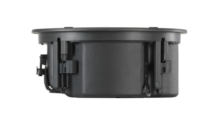 Altavoz de techo coaxial de dos vías, con perfil de montaje bajo inferior a 100 mm. Compuesto por un woofer de 6.5 pulgadas (165 mm) con cono de papel tratado y un tweeter de cúpula blanda de 1 pulgada (25 mm). Incorpora tecnología CRBI™ para una dispersión controlada. Respuesta en frecuencia de 95 Hz a 19 kHz. Cobertura cónica de 110°. Impedancia nominal de 12 ohmios. Transformador multitap integrado para líneas de 70V (60W, 30W, 15W, 7.5W) y 100V (60W, 30W, 15W). Potencia de programa continuo de 110 W (pico de 440 W). Sensibilidad de 90 dB (1W/1m). Incluye rejilla magnética sin marco. Cumple con normativas UL1480A, UL2043 y clasificación IP33 contra polvo y salpicaduras.