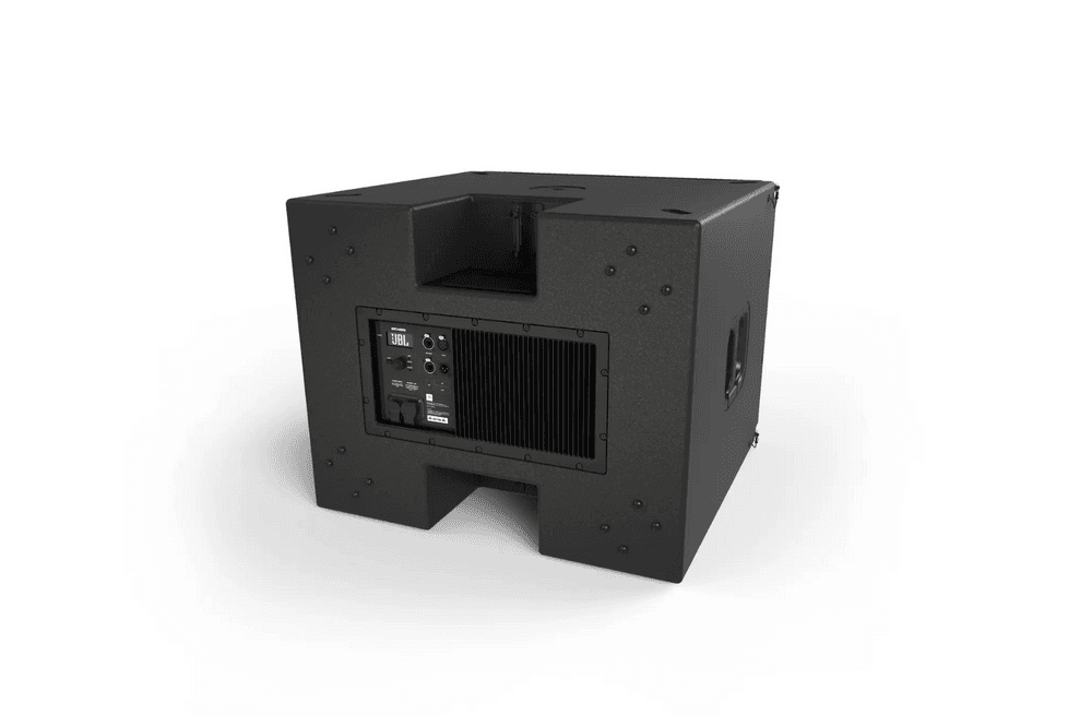 Subgrave activo y volable de 18"; frecuencia (−10 dB) 35–100 Hz (preset 80 Hz), (−3 dB) 45–80 Hz; 134 dB SPL pico; transductor 1 × JBL 2279G-1 (18", 4 Ω, doble bobina 3"); amplificación Clase D 1.100 W cont. / 2.500 W pico; audio 2 × XLR IN/OUT; red 2 × etherCON (TCP/IP, HControl, 100 Mb/s); alimentación 100–240 VAC (límites 80–260 VAC) con powerCON TRUE1 IN/OUT; LCD trasero con encoder; rigging 3 puntos; montura M20; recinto de abedul 18 mm, rejilla acero 1,8 mm; entorno IP54; dimensiones 576 × 711 × 685 mm; peso 54,4 kg.