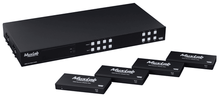 MuxLab 500412-V2 - Kit Matriz HDMI 4x4 HDBaseT, PoC, 4K/60 con Receptores Incluidos