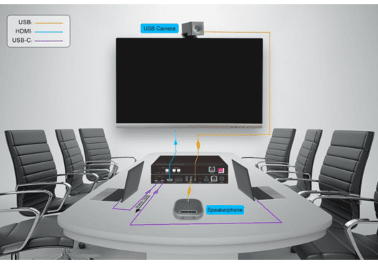 El MuxLab 500531 transforma la dinámica de las reuniones al simplificar la tecnología. Para el usuario final, la experiencia es "Plug & Play": llega, conecta un solo cable y empieza a presentar mientras su equipo se carga. Para el integrador o administrador de TI, ofrece fiabilidad y control, reduciendo las llamadas de soporte técnico gracias a su automatización inteligente. Su diseño compacto y silencioso permite instalarlo discretamente bajo una mesa o en un mueble rack sin molestar.