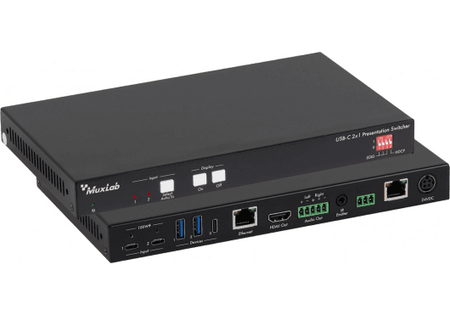 MuxLab IMU-500531 - Switcher de presentación USB-C 2x1 4K con Power Delivery 100W
