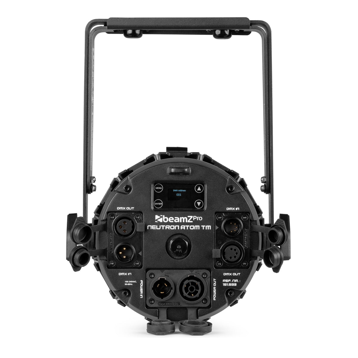 El beamZ Pro NEUTRON-ATOM TM es una luminaria híbrida LED de alto rendimiento diseñada para unir en un solo equipo cegadora de público, estrobo, superficie creativa de mapeo de píxeles, efecto visual “eye candy” y wash de escenario. Su potente LED blanco cálido + ámbar de 160 W, combinado con una luz de fondo Aura RGB controlable por píxel, ofrece una paleta muy amplia de aspectos y sensaciones, desde un tungsteno clásico hasta looks modernos de diseño de luz para giras, festivales y eventos corporativos.