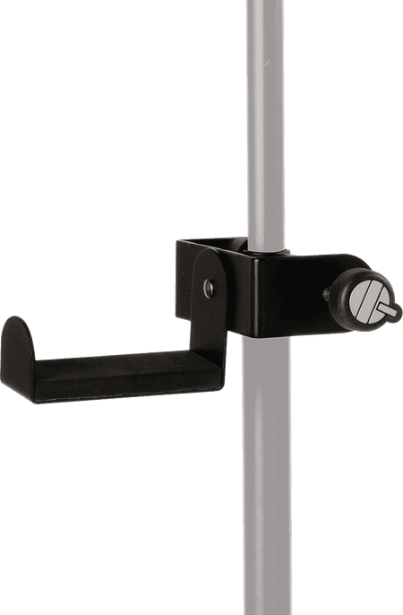 Soporte para auriculares con sistema de montaje mediante abrazadera ajustable. Fabricado en acero con acabado en color negro. El brazo de soporte, de 100 mm de longitud y 40 mm de diámetro, cuenta con un revestimiento de espuma de goma para protección del equipo. La abrazadera es compatible con tubos y superficies con un grosor comprendido entre 14 mm y 48 mm. El peso total del producto es de 0,40 kg.