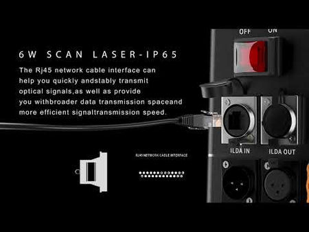 - Control APP, DMX512 (16/20 CH), ILDA sobre RJ45, sonido y auto