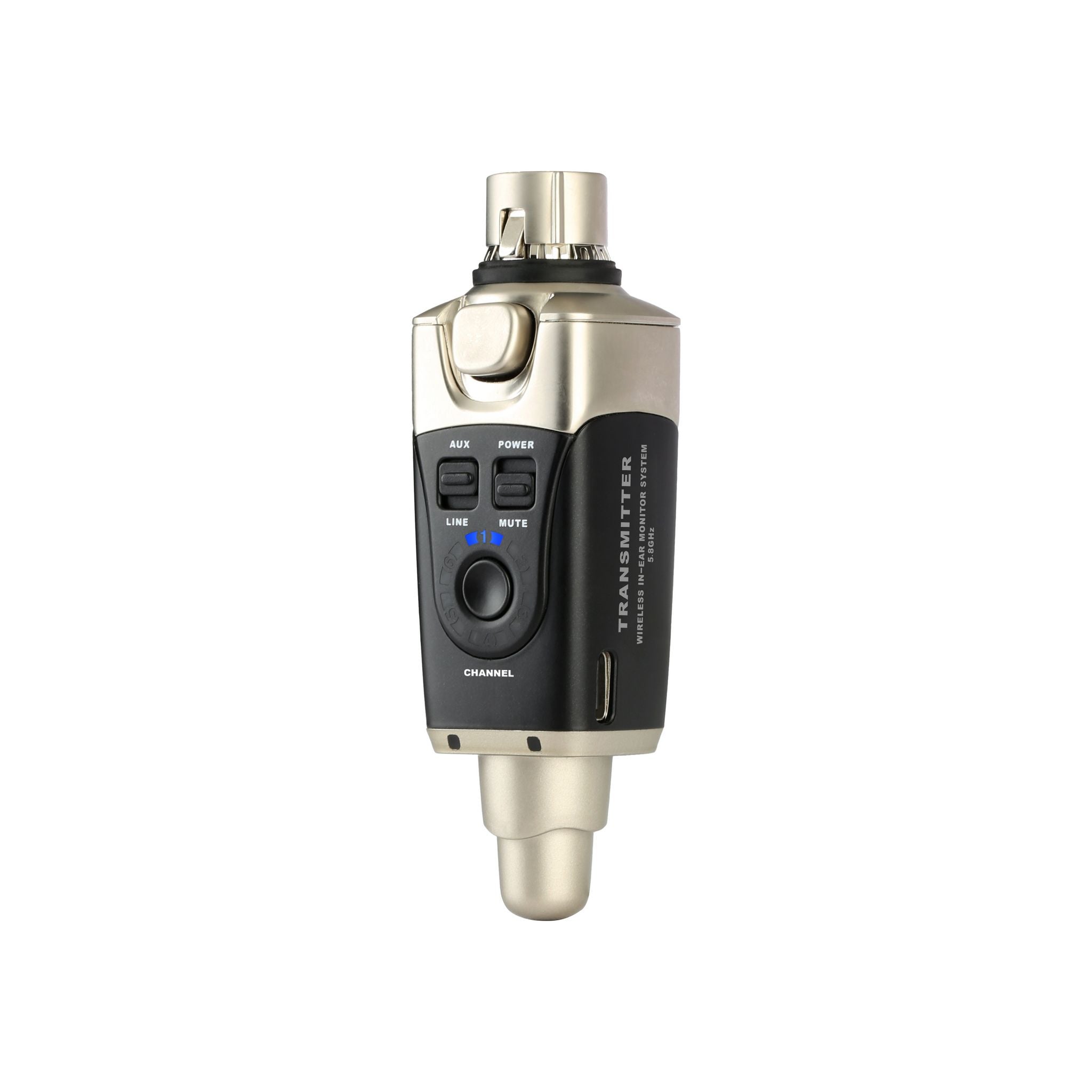 Transmisor estacionario para sistema de monitoreo personal inalámbrico (IEM). Opera en la banda de frecuencia ISM de 2.4 GHz. Ofrece 6 canales seleccionables. Calidad de transmisión de audio digital de 24-bit / 48 kHz. Latencia inferior a 5 ms. Entradas de audio: 2x Jack 6.35 mm (1/4") TRS/TS (Izquierda/Derecha). Alcance operativo de 30 metros (línea de vista). Alimentación vía puerto USB-C (5V). Construcción en carcasa metálica.