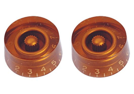 Juego de dos (2) botones de control para guitarra eléctrica tipo Gibson, referencia ADIEZ1219G. Fabricados en material sintético de alta resistencia con acabado dorado y escala numérica graduada del 0 al 10. Sistema de anclaje mediante presión para potenciómetros de eje estriado (split shaft) estándar de 6 mm. Sin tornillo de prisionero lateral.