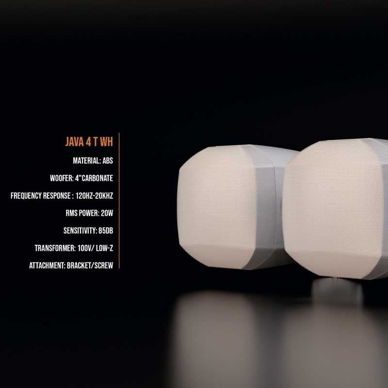 Audibax Java 4 TW - Pareja de altavoces pasivos de pared 4″ para instalación 70/100V (blanco)