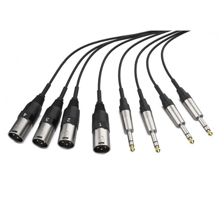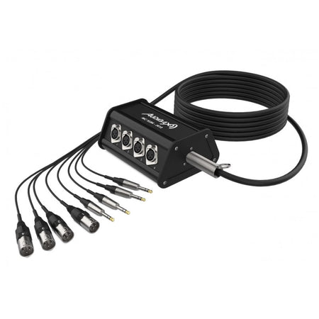 - Configuración 8 canales (4/4): 4 XLR hembra + 4 TRS hembra en la stage box; fan-out con 4 XLR macho + 4 TRS.