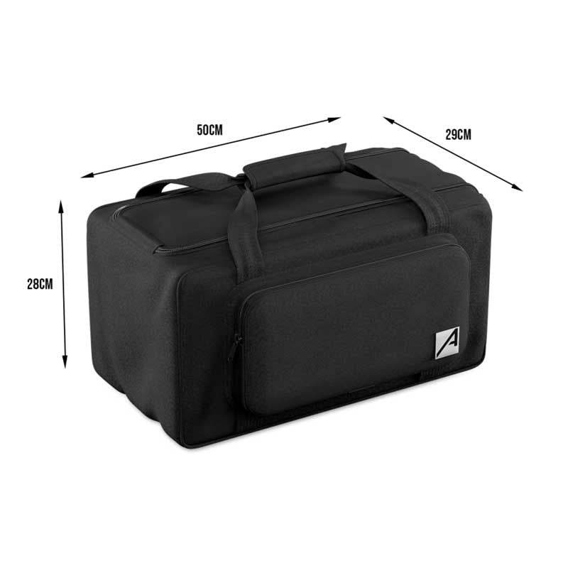 La Audibax Neo Bag LT1 es una bolsa de iluminación pensada para proteger y transportar focos tipo Slim PAR y su cableado con la máxima comodidad. Su interior acolchado incorpora divisiones extraíbles que permiten organizar el equipo según tus necesidades, manteniéndolo estable durante el transporte. En el exterior, dos bolsillos adicionales ofrecen espacio rápido para cables, fuentes de alimentación, pinzas o pequeñas herramientas. Fabricada en material sintético de alta calidad, repelente a la suciedad y de peso ligero, resulta ideal para estudios, escenarios y eventos móviles. Las asas de transporte facilitan la manipulación en carga y descarga. Sus dimensiones interiores de 500 × 290 × 280 mm encajan hasta 4 Slim PAR estándar, con margen para organizar accesorios.