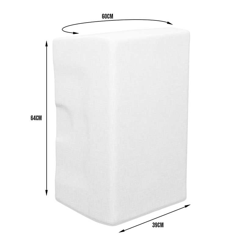 Funda elástica para altavoz de 15″ en color blanco, material acústicamente translúcido, compatible con la mayoría de cajas PA de 15″. Uso recomendado en rental e instalación interior; función principal estética.