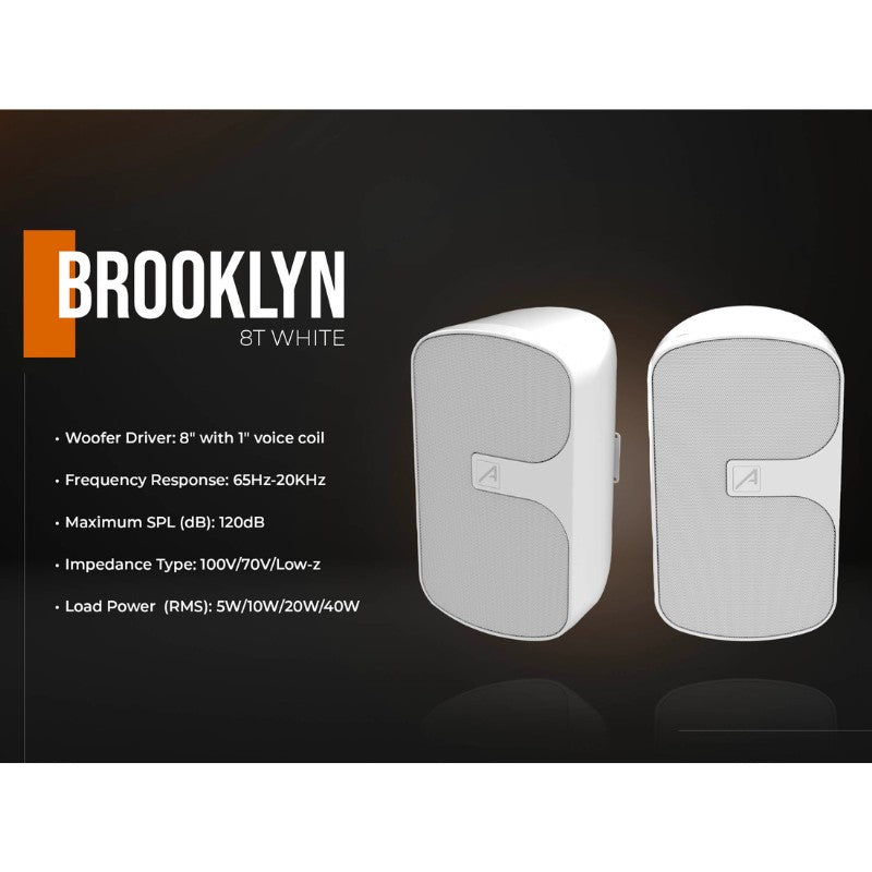 Audibax Brooklyn 8T WH - Pareja de altavoces pasivos 8″ para instalación 70/100V (blanco)