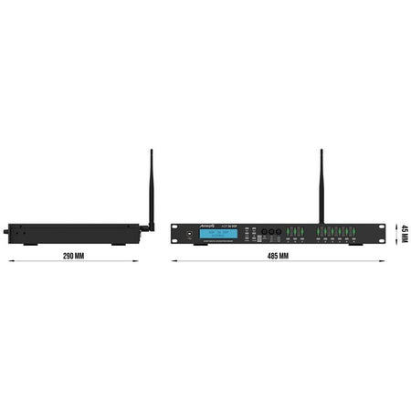 El Audibax ADP 36 DSP es un procesador de señal de 3 entradas y 6 salidas en formato rack 19″ de 1U, diseñado para la gestión integral de sistemas de PA e instalaciones fijas. Emplea un DSP de 96 kHz y 32 bits que garantiza procesamiento de alta resolución, con relación señal/ruido >105 dB y respuesta en frecuencia de 20 Hz a 20 kHz. Incorpora conectividad XLR balanceada en todas las entradas y salidas, control local mediante panel de botones y conexión a PC/red vía USB, Ethernet, RS232 y RS485 para configuración avanzada y supervisión. Para proteger el sistema y los altavoces, integra limitadores y control de pico en el procesamiento. Su chasis metálico con acabado en pintura y grado de protección IP40 (uso en interior) se completa con un peso contenido de 3 kg y dimensiones 570 × 260 × 90 mm que facilitan su instalación en racks estrechos.