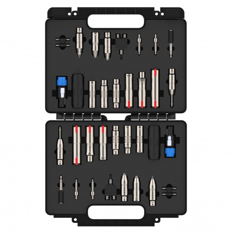 El Audibax ASC1 es un kit de adaptadores profesionales pensado para resolver al instante la mayoría de combinaciones de conexión de audio analógico en directos, estudios, instalaciones y eventos corporativos. Incluye un conjunto de adaptadores entre XLR, Jack, Speakon y RCA, todo ello presentado en un maletín rígido de color negro que mantiene cada pieza protegida, ordenada y fácil de localizar. Su propuesta reduce tiempos de montaje, evita improvisaciones con cables y mejora la seguridad de las conexiones al disponer de soluciones listas para usar.