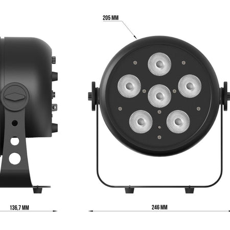 • Fuente de luz: 6 x 10 W LED RGBW 4-en-1 (60 W totales)