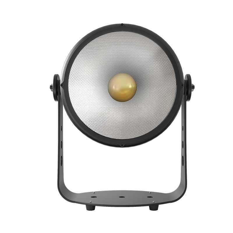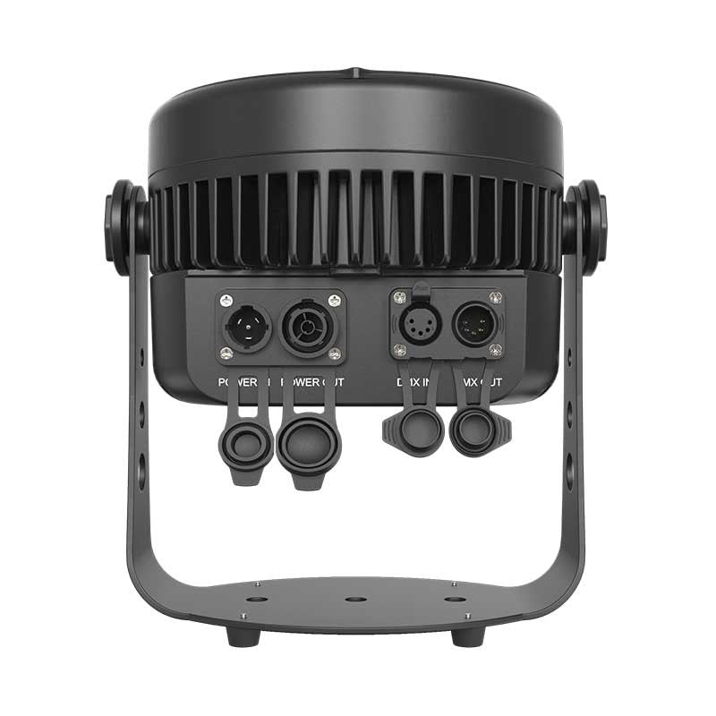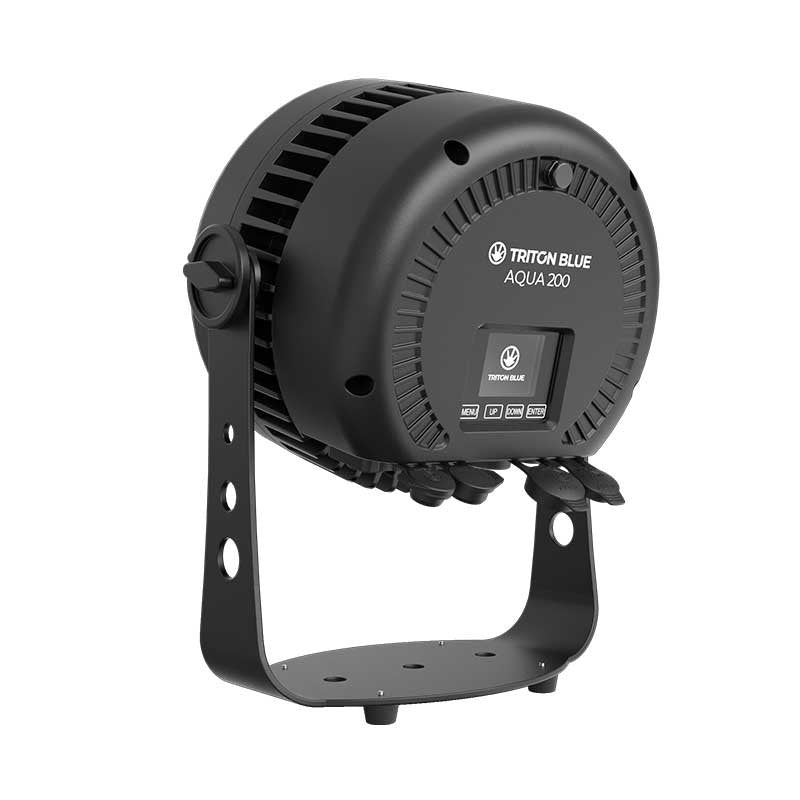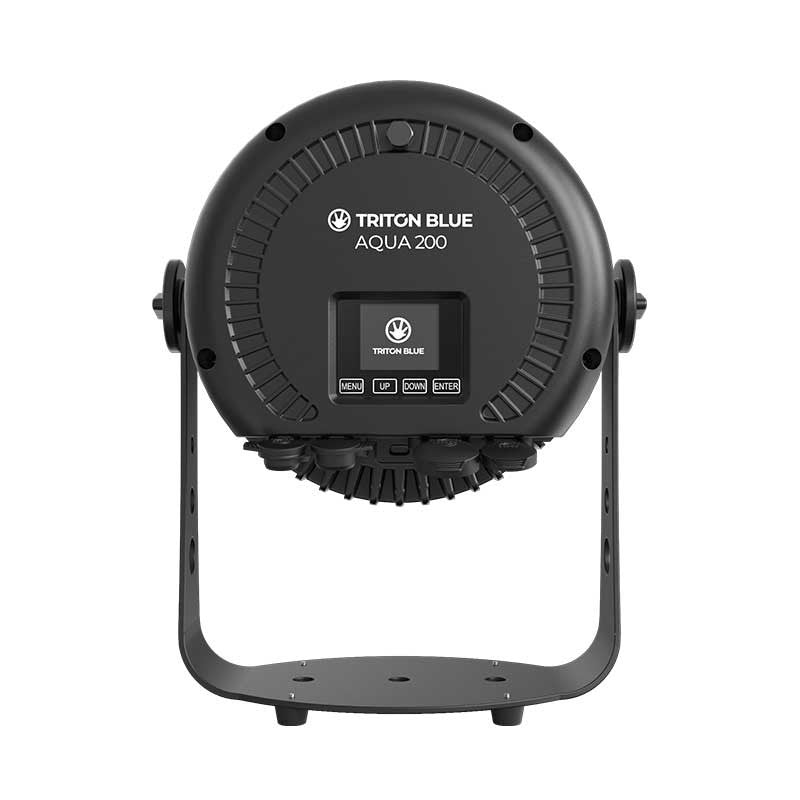 El Triton Blue Aqua 200 es un PAR LED profesional IP65 diseñado para exterior e interior exigente. Incorpora un LED COB RGBA de 200 W (4 en 1) que ofrece mezcla de color uniforme y un haz de 60° con distribución suave. El bloque óptico combina lente Fresnel y carcasa de aluminio fundido a presión para máxima disipación por convección (sin ventilador), reduciendo el ruido en rodajes, teatro o entornos de grabación. Para integración profesional, equipa conectores IP65 REAN (by Neutrik): XLR de 5 pines para señal y PowerCON True (entrada/salida) para alimentación.