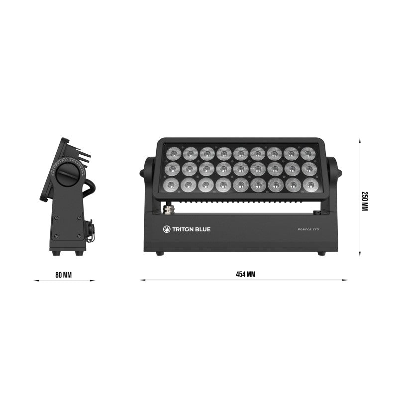 Triton Blue Kosmos 270 IP65 – Washer LED 27×10W RGBW con ópticas 15°/25°/45°, CCT 2400–8000 K y control DMX/RDM/W-DMX
