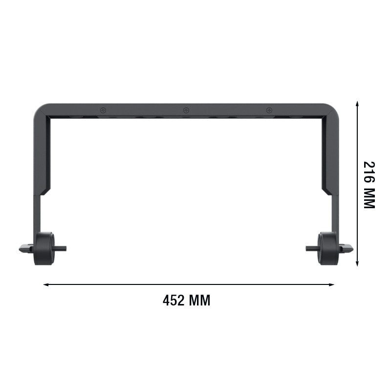 Soporte tipo lira horizontal modelo AH600-001, fabricado en aluminio con acabado en color negro. Diseñado específicamente para el montaje y la sujeción de la cabeza móvil Triton Blue Helios 600 IP65. Este accesorio permite una instalación segura en estructuras para el posicionamiento horizontal del equipo, garantizando estabilidad y un ajuste preciso.