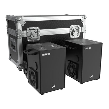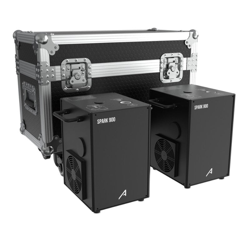Audibax Spark 900 Kit FC2 - 2 máquinas de fuego frío con flightcase doble para eventos de alto impacto