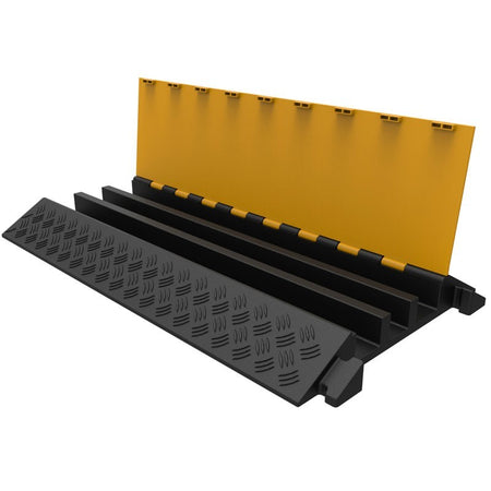 El Triton Blue CB3 es un protector de cables portátil de 3 canales diseñado para instalaciones temporales en eventos, ferias, obras y recintos con tránsito peatonal y de vehículos. Su base de caucho vulcanizado de alta resistencia y su tapa amarilla de gran visibilidad aseguran la protección del cableado tendido en el suelo y reducen el riesgo de tropiezos. Permite encadenar tramos mediante conectores macho/hembra en los extremos y cuenta con asa integrada para un transporte cómodo. Capaz de soportar cargas aproximadas de 9 toneladas cuando se instala sobre terreno firme y nivelado, cada canal admite cables de hasta 50 mm de altura con anchos diferenciados para mangueras, alimentación y señal.