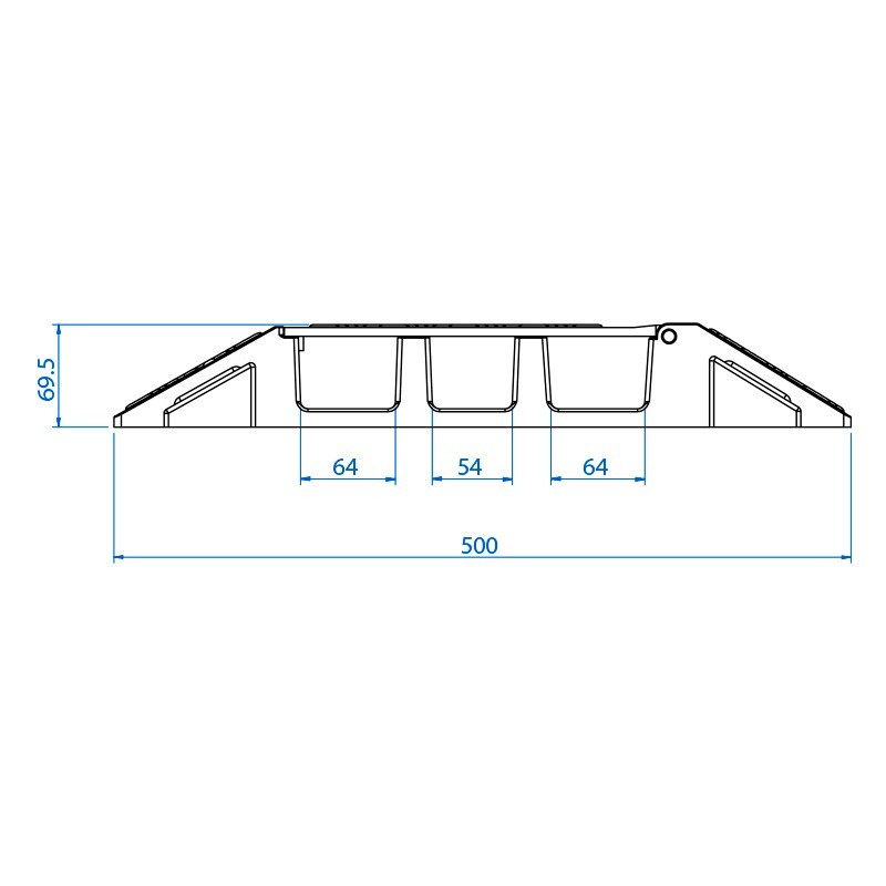 Triton Blue CB3 - Pasacables de 3 canales 900 × 500 × 70 mm con tapa amarilla de alta visibilidad