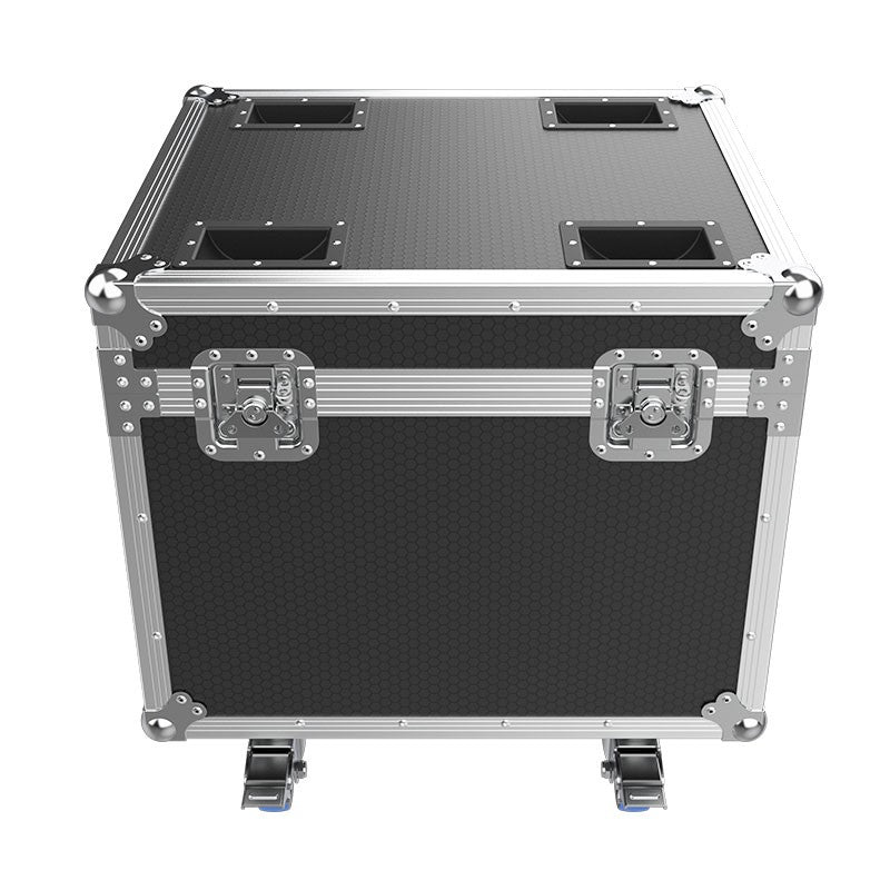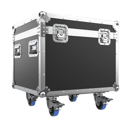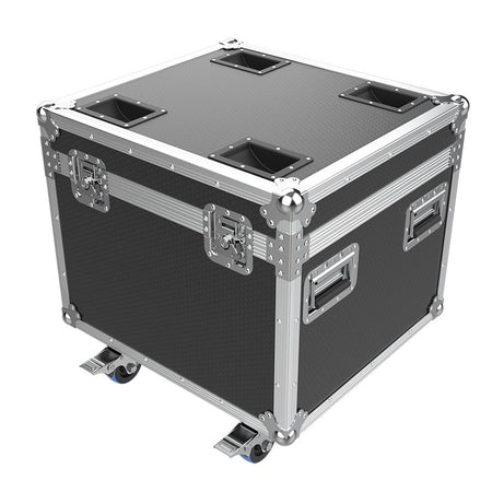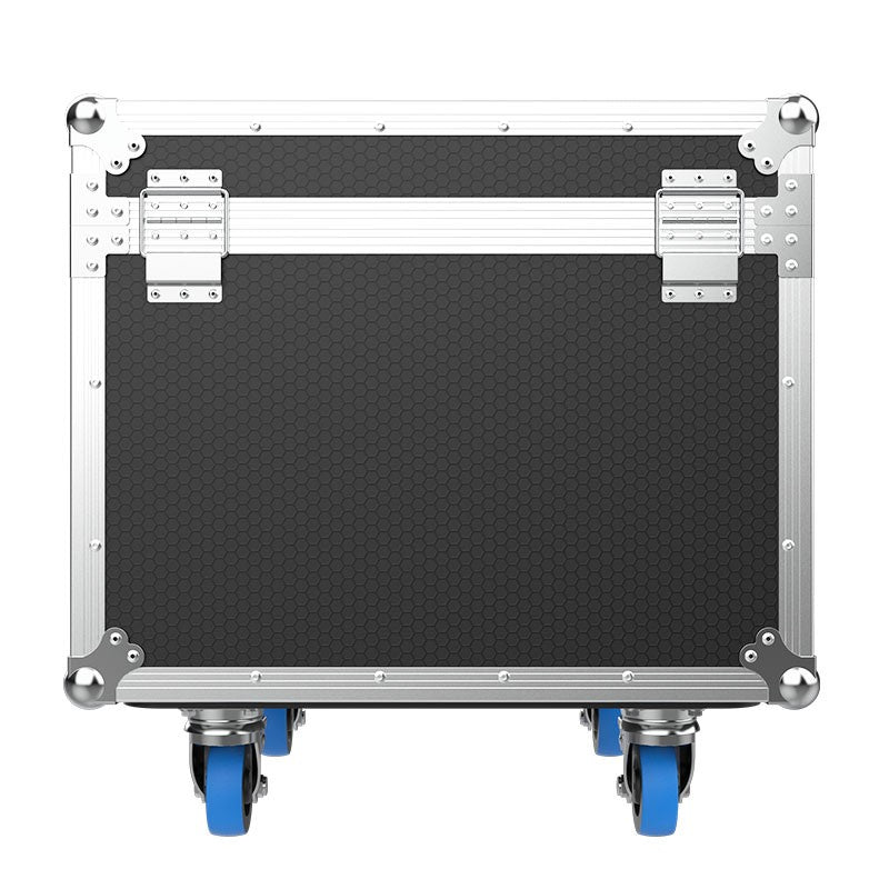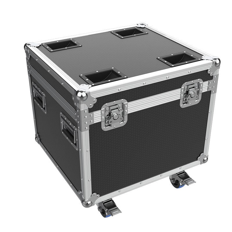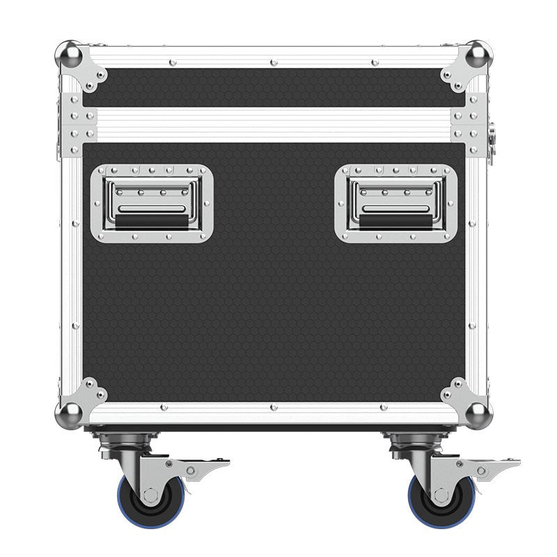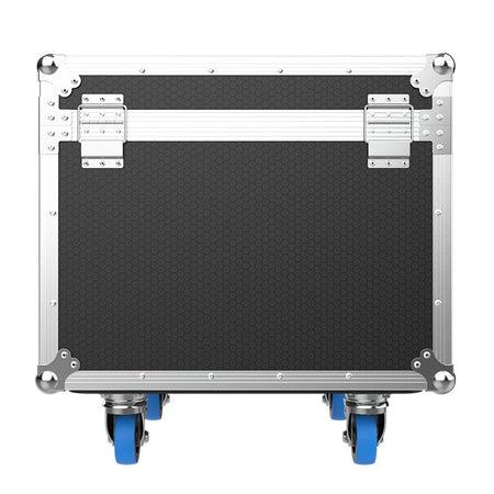 - Flightcase para uso profesional, cierres de mariposa, recubrimiento exterior PROBUCKER, angulos laterales de aluminio con 4 ruedas (2 de ellas con freno)