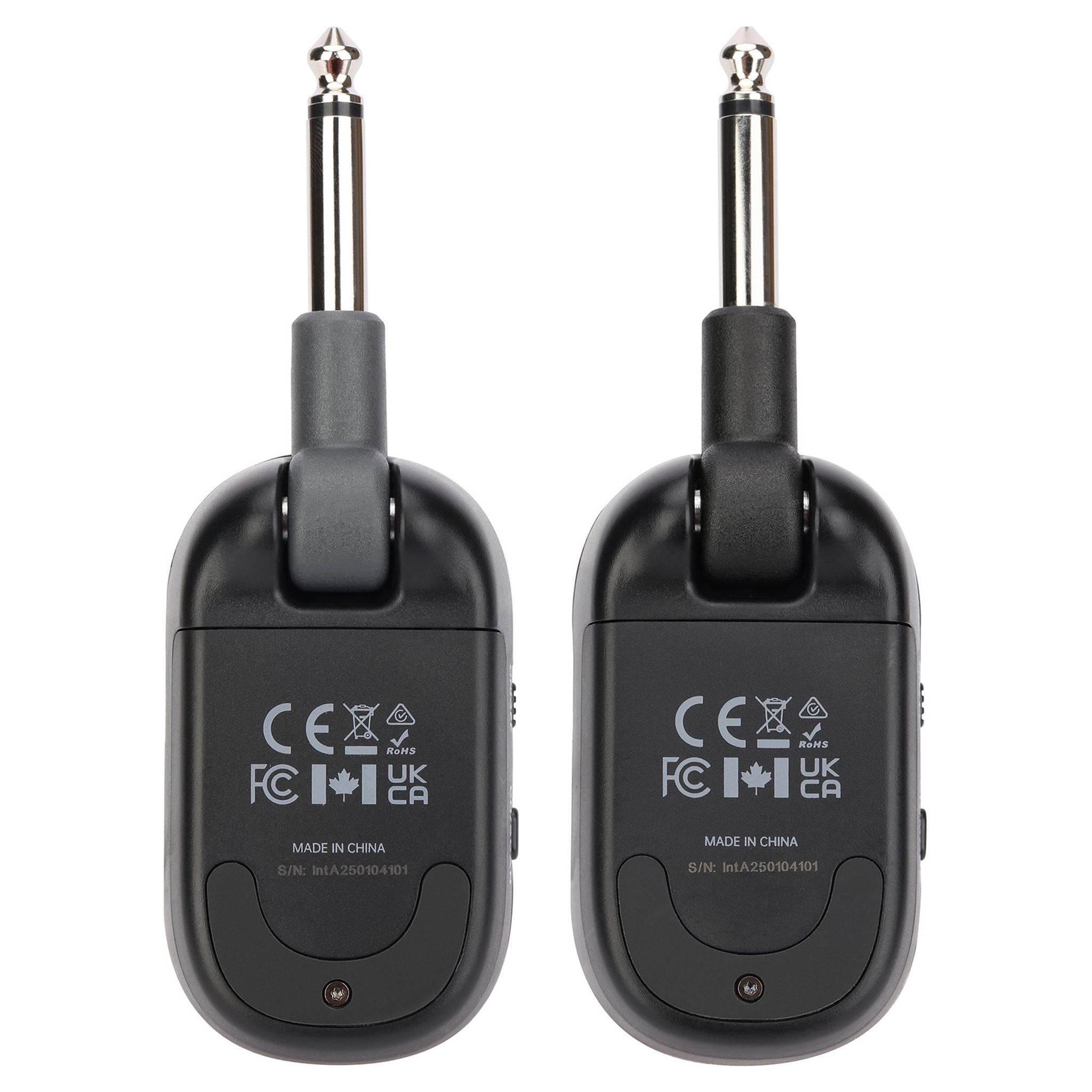 Sistema inalámbrico 5,8 GHz True Diversity; audio 24 bit/48 kHz; latencia < 5 ms; rango hasta 30 m; 6 canales RF; batería 780 mAh (5 h); respuesta 20 Hz–20 kHz; transmisor y receptor plug & play de metal; compatibilidad con pickups activos y pasivos.