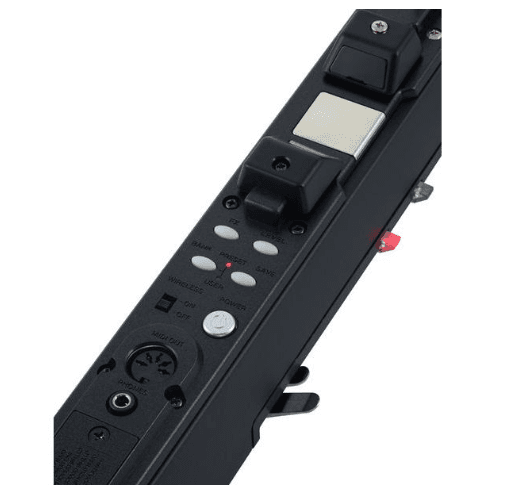 Instrumento de viento electrónico inalámbrico con 13 sensores táctiles, 8 diales de control, audio estéreo 2,4 GHz, USB-MIDI, salida TRS ¼″ y ⅛″, boquilla sensora y batería de larga duración.
