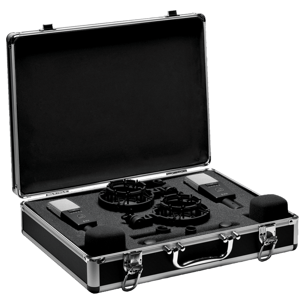 • ¿Qué incluye el set estéreo? Dos C414 XLS igualados, 2 suspensores H85, 2 pantallas W414X, barra estéreo H50, estuche de aluminio y la documentación de medición individual.