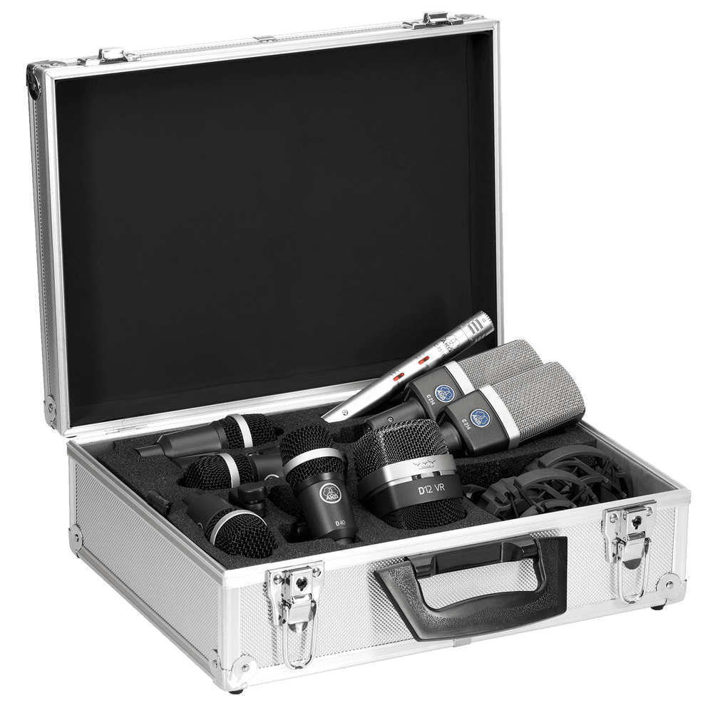 • Sonido coherente del kit completo: selección AKG de referencia para bombo, caja/toms, charles y overheads.