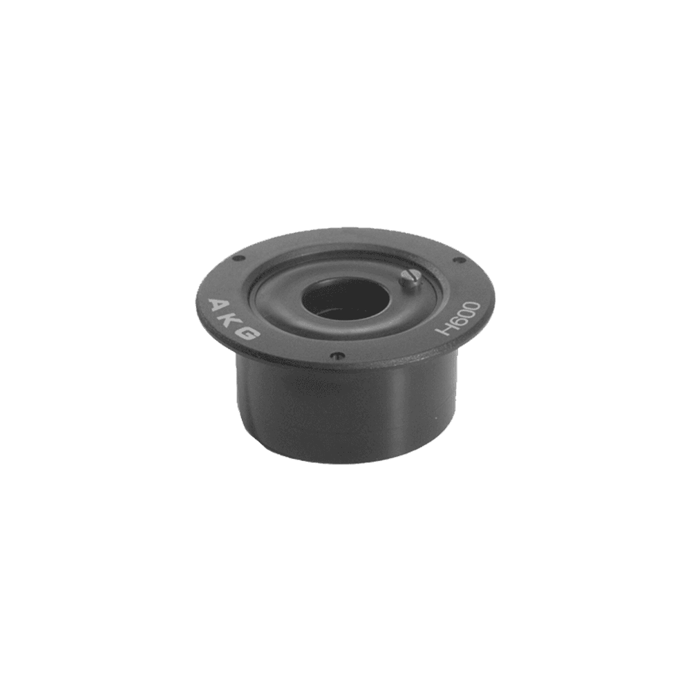 El AKG H600 es un soporte de suspensión (shock mount) para instalación fija que desacopla mecánicamente los micrófonos de cuello de cisne de la serie Discreet Acoustics Modular (DAM) en sus versiones E/ES (p. ej., GN15E, GN30E, GN50E). Su construcción combina una cazoleta de bajo perfil con un inserto elástico interno, lo que proporciona hasta 20 dB de atenuación del ruido transmitido por estructuras. Incorpora un sistema de bloqueo que impide la extracción accidental del cuello de cisne y se entrega con el inserto A608, que sujeta la zona fina del cuello y permite ajustar la altura visible sobre la mesa o atril. Requiere un orificio de montaje de ≈53 mm (2,1") y ofrece un acabado discreto en negro para integrarse en salas de conferencias, templos, atriles y mesas de reunión.