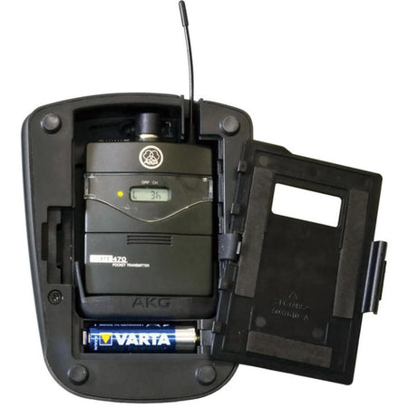 ¿Incluye el transmisor inalámbrico? No. La base acepta petacas AKG compatibles (PT40/45/420/450/470 o DPT800) que se alojan en el interior para crear el enlace inalámbrico.
