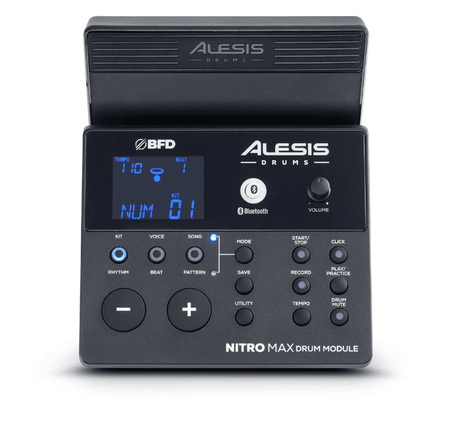 El Alesis AL1021803260 es el módulo de batería Nitro Max original, diseñado como cerebro del kit Nitro Max y como repuesto de fábrica. Incorpora 32 kits listos para tocar con sonidos procedentes de la librería BFD y 16 kits de usuario editables, para un total de 441 instrumentos (batería, platos, percusión y SFX) y polifonía máxima de 64 notas. Integra herramientas de práctica y producción —80 canciones internas, modo de aprendizaje con beats, rhythms y patterns, metrónomo, secuenciador y grabador de interpretaciones— además de Bluetooth Audio para reproducir música del móvil sin cables y USB-MIDI para trabajar con tu DAW y plugins como BFD Player. Su conectividad física incluye salidas L/R de 6,35 mm, auriculares 3,5 mm, entrada Aux 3,5 mm, entradas de expansión Tom 4 y Crash 2, y conector DB-25 para el arnés (snake) de pads.