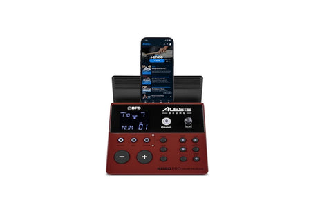 - Módulo Nitro Pro actualizado: 52 kits (36 BFD + 16 usuario) y 500+ sonidos; polifonía máx. 64; 60 pistas para tocar; Bluetooth audio y aux in 3,5 mm.