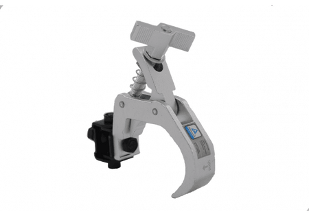 La abrazadera plegable Algam CR-4260-F está diseñada para un montaje rápido y seguro en tuberías y trusses de diámetro variable entre 42 y 60 mm. Su mecanismo de apertura permite instalarla sin necesidad de desmontar la estructura, y su tornillo M10 con tuerca autoblocante garantiza una sujeción firme soportando hasta 100 kg. Fabricada en acero de alta resistencia, esta abrazadera ofrece durabilidad y versatilidad en entornos profesionales de iluminación, sonido y rigging.