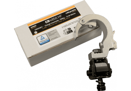 La abrazadera plegable Algam CR-4850-HF está diseñada para ofrecer un anclaje seguro y versátil en estructuras tubulares de Ø 48–50 mm, soportando hasta 100 kg de carga. Su mecanismo abatible facilita la instalación rápida sin desmontar la tubería, mientras que su construcción de acero forjado garantiza resistencia al desgaste y durabilidad en entornos profesionales de iluminación, sonido y rigging.