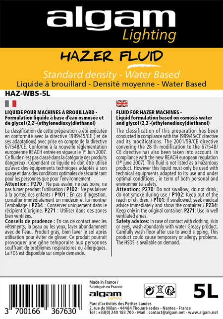 Comprar Algam HAZ-WBS-5L – Líquido de niebla de densidad media a base de agua, 5 L