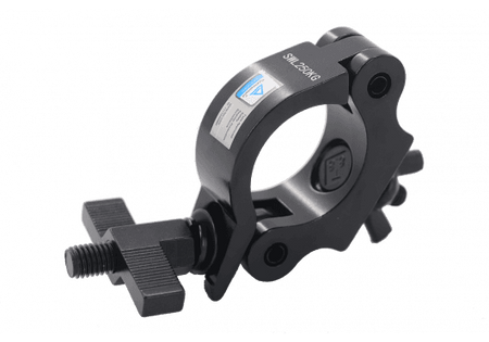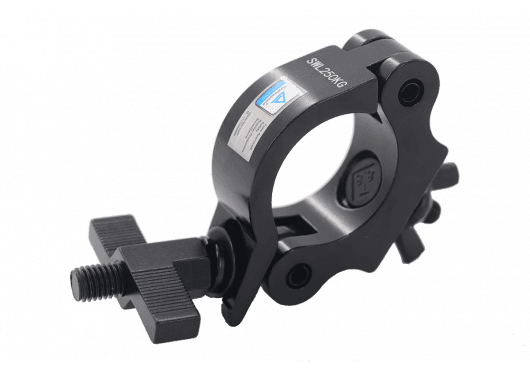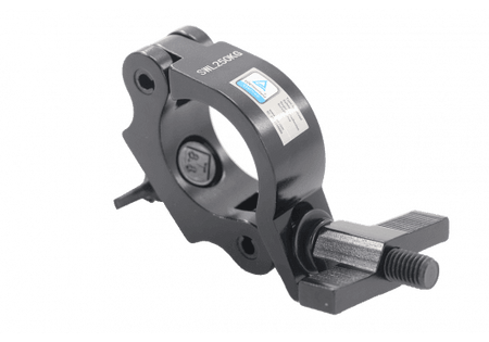La abrazadera Algam HCB-4252-250KG es un elemento de fijación profesional diseñado para unir de forma rápida y segura tubos y barras de iluminación de diámetros entre 42 mm y 52 mm. Fabricada en acero de alta resistencia con recubrimiento negro mate, soporta cargas de hasta 250 kg sin deformarse. Su tornillo de apriete M10 con pomo moleteado ofrece un cierre firme sin necesidad de herramientas adicionales, facilitando montajes en truss, lyres y estructuras de escenario.